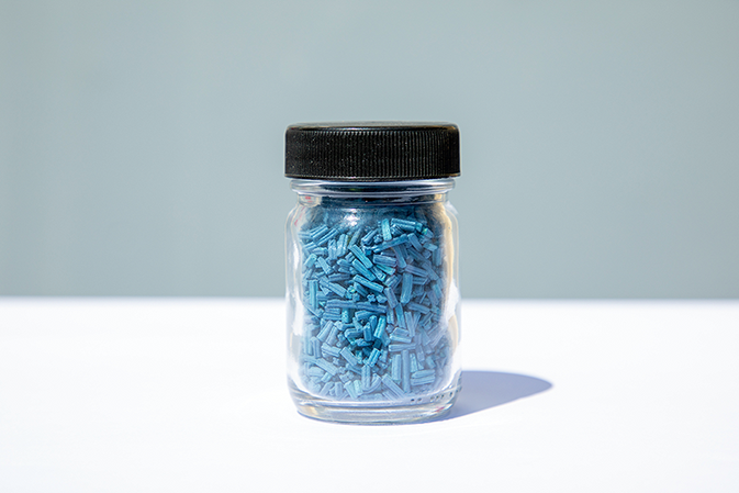 De basisingrediënten voor onze HPC-katalysator zijn zand en bauxiet (aluminiumerts). We mengen deze stoffen met een metaalzoutoplossing. Daarna drogen en bakken we het product. Het resultaat is een katalysator die eruitziet als kleine kleurige stukjes spaghetti. Onze katalysatoren worden wereldwijd gebruikt om schonere brandstoffen te maken.