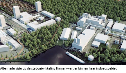 De gemeente Amsterdam heeft de plannen voor de ontwikkeling van het Hamerkwartier gepubliceerd. Albemarle heeft met teleurstelling kennisgenomen van de plannen voor (hoog)bouw in de directe nabijheid van ons chemiebedrijf. We kennen in Nederland een richtafstand van honderden meters voor bebouwing in de buurt van een chemiebedrijf. Dat is niet zonder reden. Het is uniek en opvallend dat de huidige ontwikkelingsplannen voor het Hamerkwartier hier onvoldoende rekening mee houden.